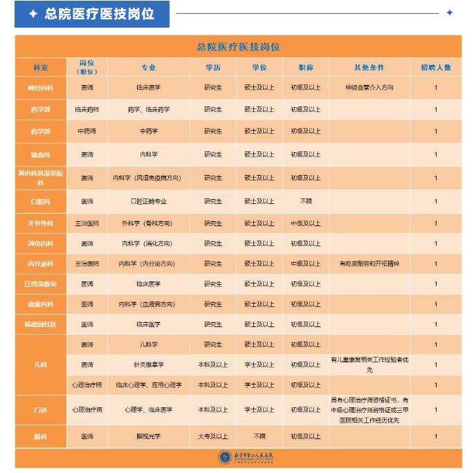 以上崗位均享受醫(yī)院科研獎勵、培訓(xùn)進(jìn)修、晉升職務(wù)職稱等權(quán)利,以及五險一金、用餐補(bǔ)助、帶薪年休假、工會福利等待遇。
