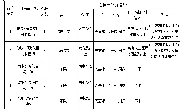 具體招聘辦法由港口區(qū)人民醫(yī)院人事科負責(zé)解釋。