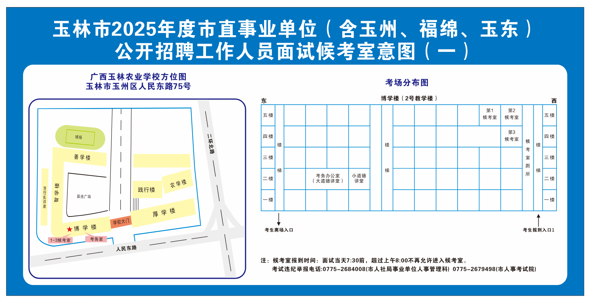 (一)因玉林市城區(qū)雨污分流改造項目施工,人民東路(金玉路至二環(huán)東路段)實行單向圍擋封閉。受封路影響,交通流量較大時,車輛通行緩慢。請各位考生關(guān)注實時路況,務(wù)必規(guī)劃好出行時間和路線,切勿因交通擁堵而影響考試。