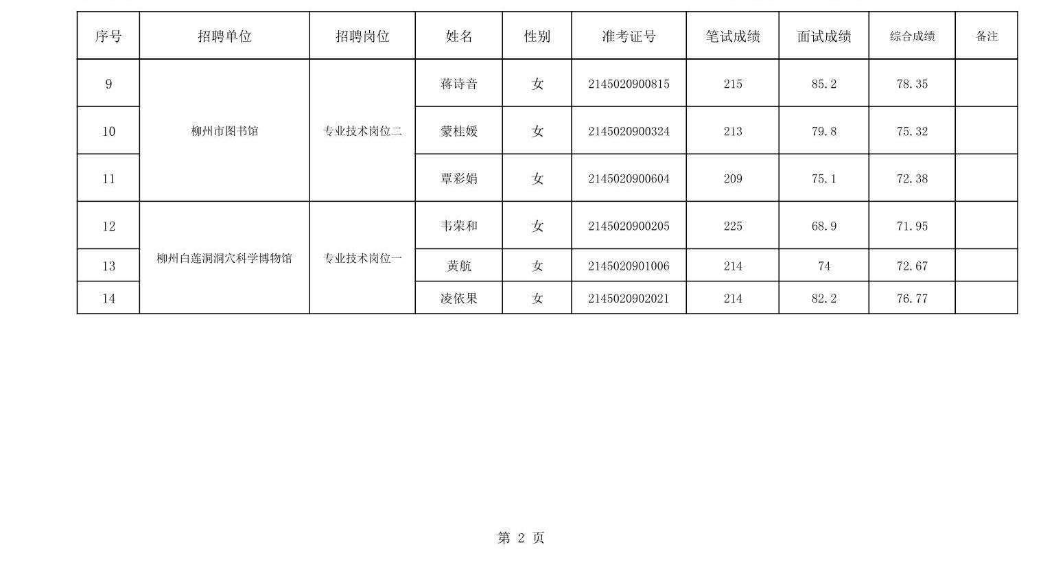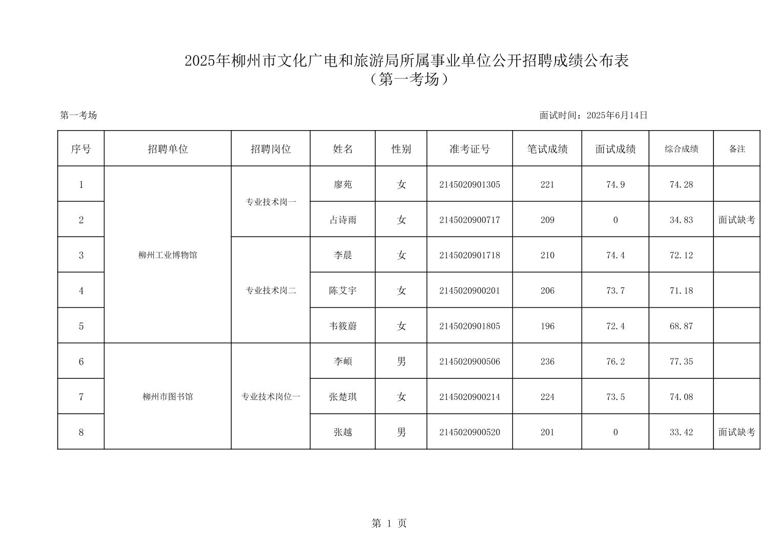 2025年柳州市文化廣電和旅游局所屬事業(yè)單位公開招聘成績(jī)公布表