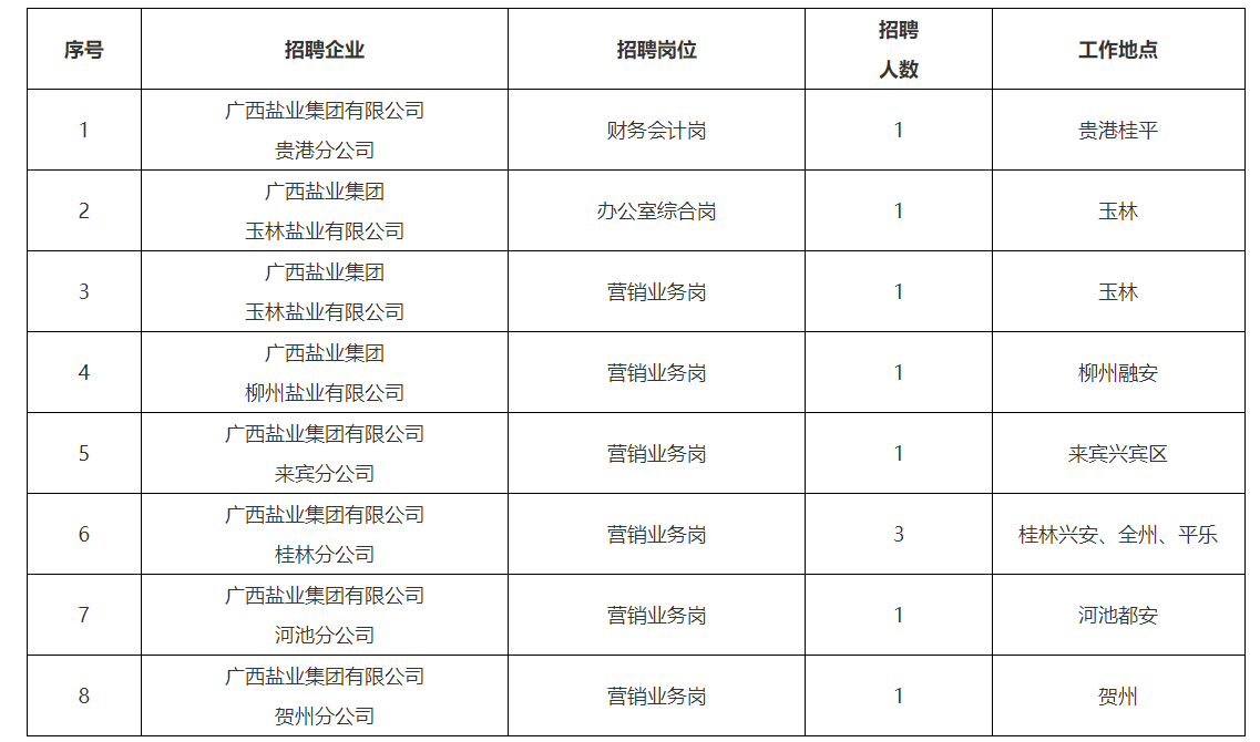 具體招聘崗位、任職要求、崗位職責見附件《廣西鹽業(yè)集團招聘崗位職責及任職要求》。