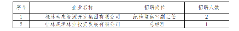 根據(jù)桂林生態(tài)資源開發(fā)集團有限公司經(jīng)營管理和發(fā)展需要,現(xiàn)面向社會公開招聘集團本部及下轄子公司2個崗位人員,有關事項公告如下: