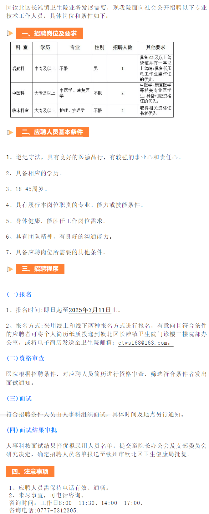 2025年欽北區(qū)長灘鎮(zhèn)衛(wèi)生院關于招聘編外人員的公告