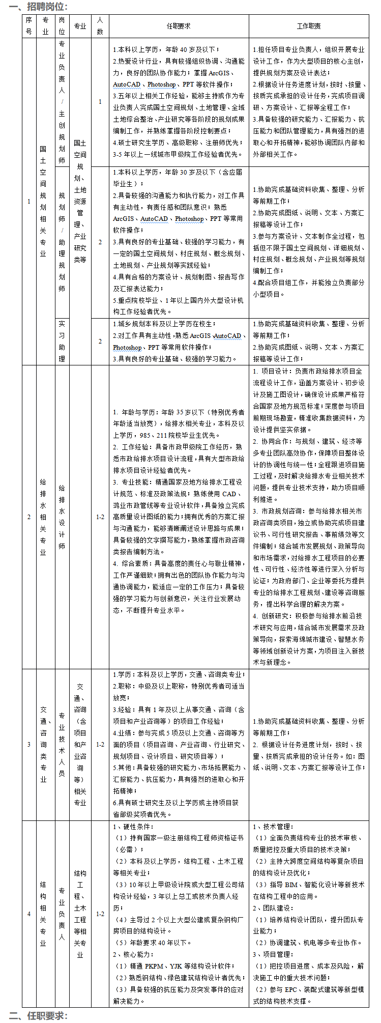 4.應聘技術人員具有一線城市甲級設計院3年以上工作經歷者優(yōu)先。