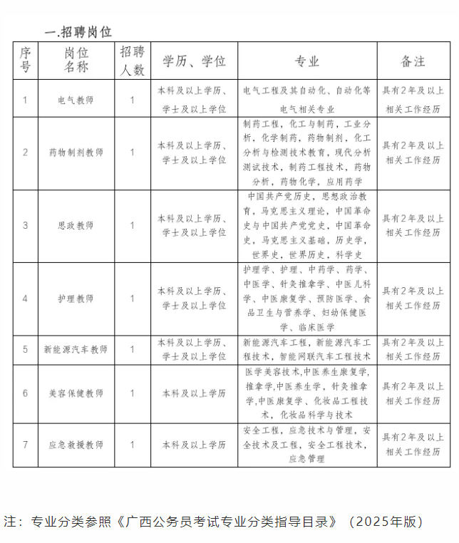 01廣西柳州化工技工學校2025年兼職教師招聘公告