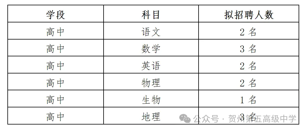 原文標(biāo)題:賀州第五高級(jí)中學(xué)2025年秋季學(xué)期招聘教師公告