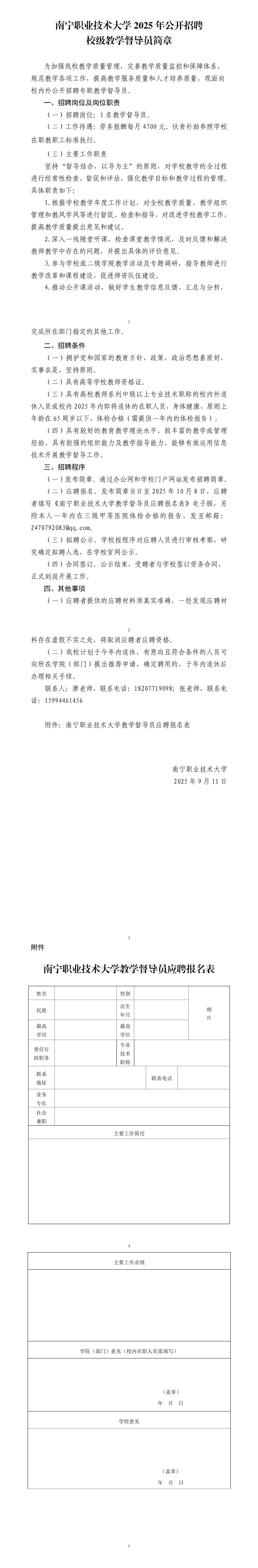 2025年南寧職業(yè)技術(shù)大學(xué)公開招聘校級教學(xué)督導(dǎo)員簡章