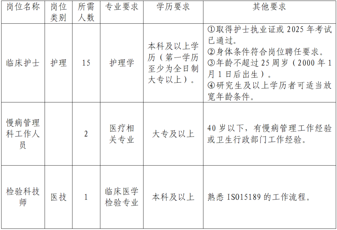 (一)報名。應聘者需在2025年9月21日前將個人電子簡歷及應聘所需佐證材料,包括但不限于畢業(yè)證(第一學歷和最高學歷)、學位證、執(zhí)業(yè)證(考試成績)、職稱證、進修結(jié)業(yè)證、??谱o士培訓合格證、執(zhí)業(yè)資格考試成績單等打包發(fā)送至rsk7836669@163.com郵箱,報名材料以“姓名+專業(yè)+衛(wèi)技招聘”名字命名。