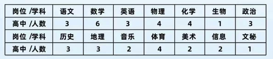 學(xué)校于2023年9月1日正式開學(xué),現(xiàn)有30個行政班,一千余名學(xué)生,專任教師128人,發(fā)展勢頭強(qiáng)勁。為適應(yīng)學(xué)校未來發(fā)展需要,特面向全國師范類畢業(yè)生擇優(yōu)招聘青年教師若干,詳情如下: