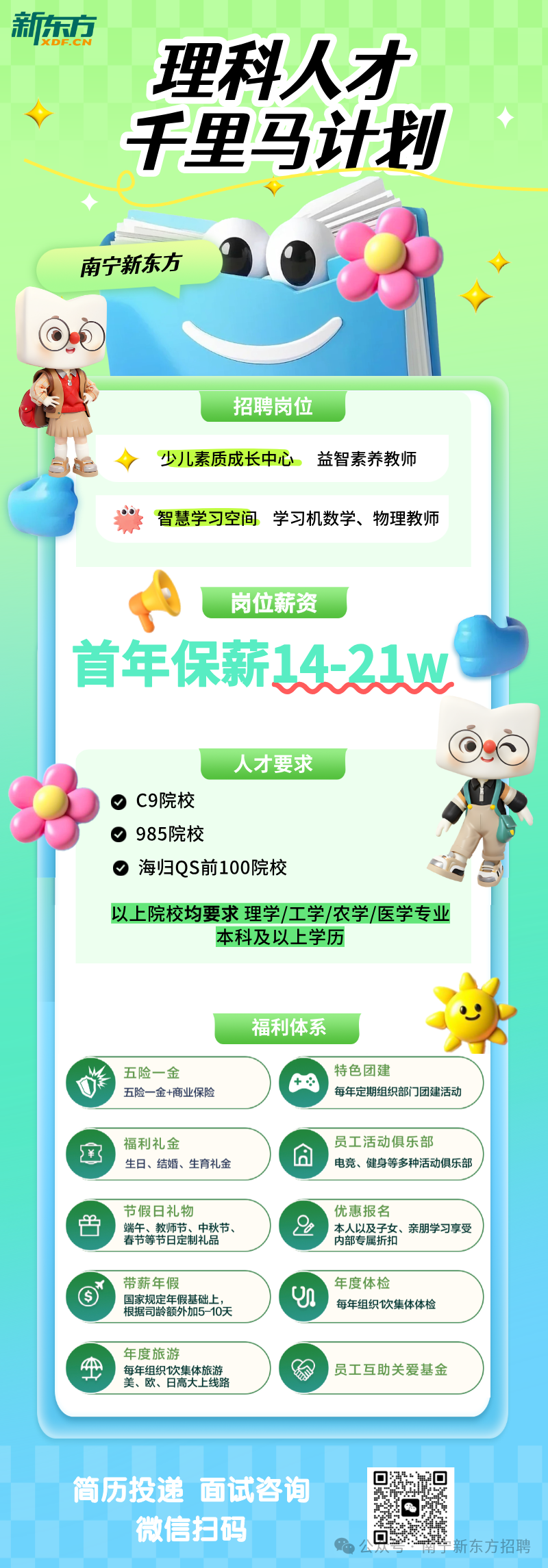 原文標(biāo)題:南寧新東方急招理科教師 | 首年保薪12-21萬 雙休 五險(xiǎn)一金 年度帶薪旅游